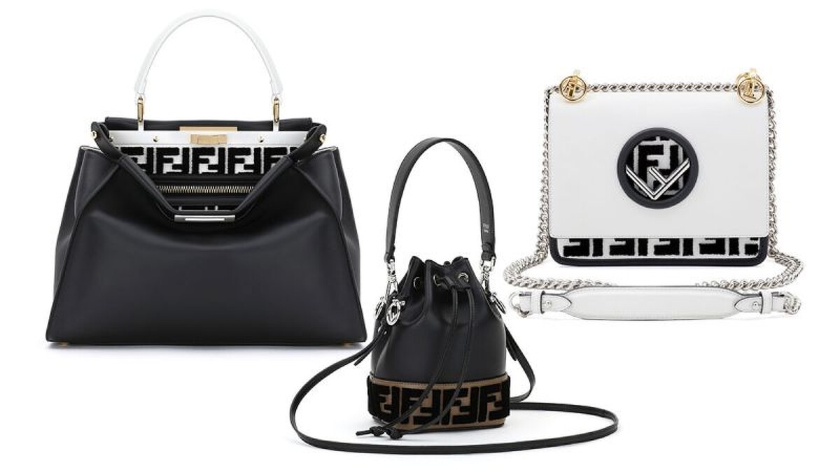 這一次2018的FF標誌,以長方形及方形設計強勢回歸,成為鋪滿產品的主打圖案,選用經典的煙草棕、黑色及煥然一新的黑白色,佔據各式洋溢都會時尚格調的款式,包括服裝及配飾系列:品牌部分經典袋款的絲絨嵌飾上矚目登場,妝點Kan I及Mini Kan I、經典的Peekaboo、原裝及小型Runaway、Mon Trésor、Triplette及Wallet on Chain手袋,每款手袋均能配搭可拆除的Strap You及Mini Strap You肩帶;鞋履設計上同樣佈滿FF標誌;別注系列亦推出一款太陽眼鏡、撞色設計的FF版本經典煙草棕及黑色貂皮手袋吊飾、FF FENDI Witch吊飾、雙圈手鐲及各式iPhone保護套…簡直以全面包圍妳的生活面向來規劃。
