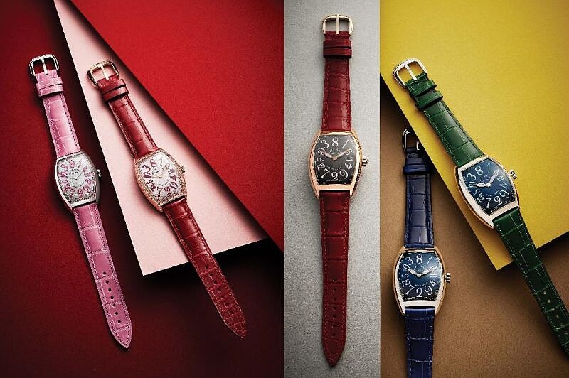 為慶祝15週年,特別在亞洲推出一系列特別版本腕錶。搭配Franck Muller聞名的Cintrée Curvex酒桶型錶殼,搭配上Crazy Hours的機械跳時裝置,呈現繽紛豐富又多樣的特別設計。大型款採用藍色或灰色錶盤,綴以陽光放射飾紋,並在內凸緣上的五分鐘刻度注入豐富色調--綠色、紅色、藍色或黑色,與皮錶帶互相映襯。