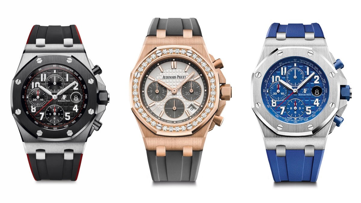 採用精鋼、玫瑰金或黃金錶殼,再結合鑲嵌了 30 顆圓鑽的錶框,以及多彩選擇的橡膠錶帶,嶄新的皇家橡樹離岸型自動上鍊計時碼錶不論在色彩上抑或創意,皆與運動風格的橡膠錶帶呈現奢華對比,大方顯現迷人的時尚氣魄!