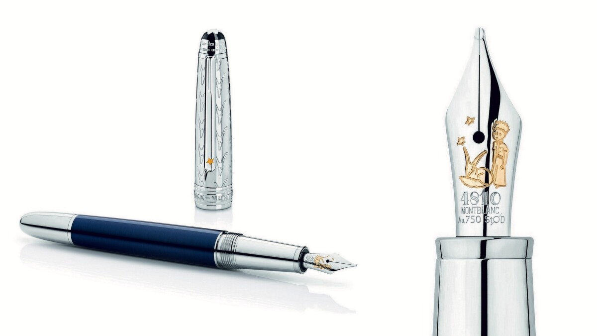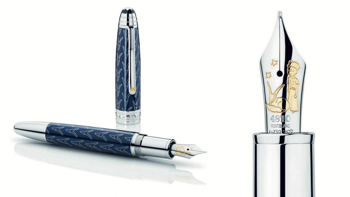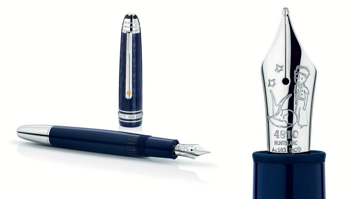 筆尖上除了刻有一貫象徵大師傑作系列的「4810」數字印記,更多了小王子與狐狸身影的陪伴,筆蓋與筆身則是採用夜藍色彩,彷彿從書中那廣袤宇宙幻化而成,仔細一看,筆蓋上飾著反覆出現的狐狸面部,意喻著狐狸對小王子的重要啟發價值,而筆夾飾以的金色星星則象徵著小王子在返回星球前告訴飛行員的一句話:「只要你仰望星星並在心裡想著,就能隨時聽到我的笑聲。」設計中最特別的是鋼筆頂端那摘錄自原著小說中的雕刻語句:「Créer des liens? ... Tu seras pour moi unique au monde (建立關係? ... 對我來說,你會是世界上唯一的存在。) 」