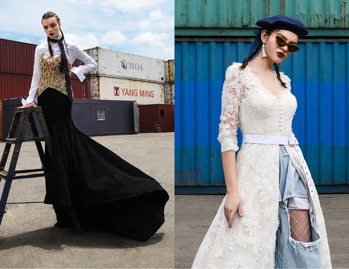 而今年以「FUSHION混時尚」為主題,找來多位年輕新銳設計師以混搭的方式結合高級訂製禮服,跳脫傳統的優雅與奢華規則,展現全新的趣味、青春樣貌,由泰國時尚界新寵Kanapot Aunsorn、台灣前衛跨界大師陳科維、加州華裔新稅設計姐妹檔Val Stefani、與設計大獎常勝軍陳宏宇一同打造,將今年的運動風融入透視感晚裝、丹寧風混搭出美式奢華禮服、搖滾風的外套結合經典婚紗展現狂放不羈,將這些年輕化的訂製禮服重新穿搭,挑戰禮服街拍也時髦的全新造型,也塑造婚紗穿搭的另一個境界!