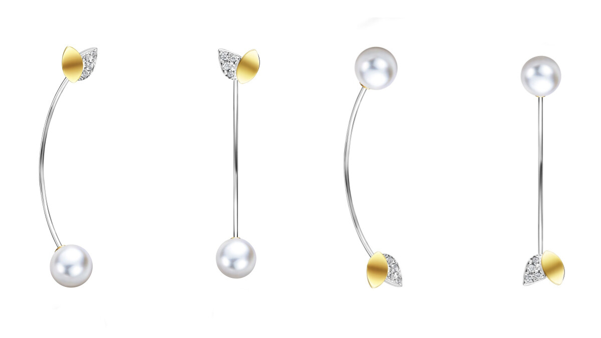 透過簡潔俐落的形式,將珍珠、鑽石、18K黃金與18K白金完美結合,替意喻著小巧花朵的“Floret”一單詞在設計上展現的淋漓盡致,而精緻又纖細的白金弧線則串連並彰顯出各個素材的純粹之美。
