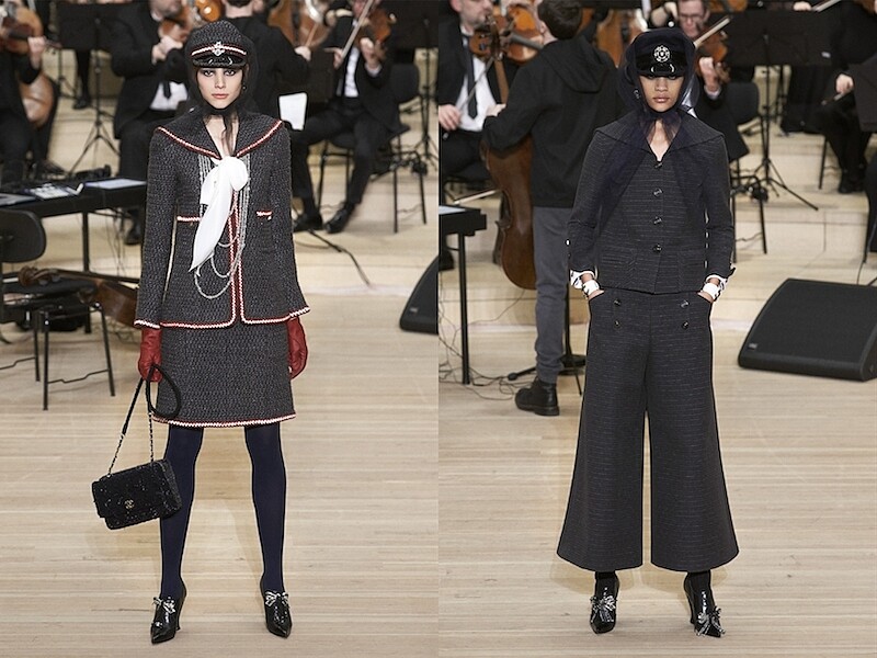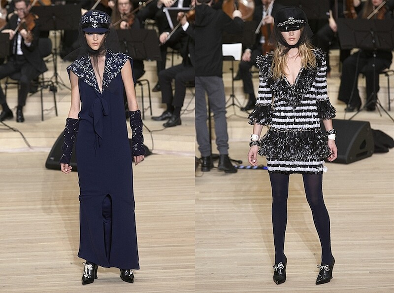 而老佛爺卡爾.拉格斐(Karl Lagerfeld)感覺到水手服是香奈兒女士主要的靈感泉源之一,便從1983年開始不間斷的重新詮釋條紋上衣這個時尚符號。更在2017/2018的香奈兒巴黎-漢堡 Paris-Hamburg工坊系列中,做出更進一步的延展。重新審視了水手所有服裝:雙排扣大衣,水手服防禦氣候因素的特色、搶眼的海軍帽、水手包、水手服更是以最經典版本搭配著水手領再次重現、又帥又美的雙排釦海軍大衣、條紋上衣則轉變成為帶有條紋羽飾的優雅品味洋裝…將航海主題與香奈兒工匠的天賦技藝結合在一起。