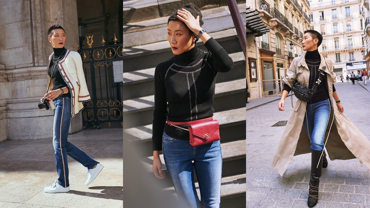 身為CHANEL品牌好友的孫怡,日前受邀前往巴黎參觀香奈兒女士寓所時,也率先換上三套前導系列的服裝,展現俐落時髦的街頭風範,其中最為生火的便是中間和右圖的腰包示範,來自前導系列的紅色腰包使用細版皮帶搭配鍊條,展現優雅內斂的女士風格;右圖的尼龍腰包,孫怡以斜背方式示範,充滿運動輪廓的這款則來自近日熱騰騰開賣的香奈兒第一個專為滑雪運動打造的Coco Neige系列,看完是否更確定腰包就是今年的大勢呀!
