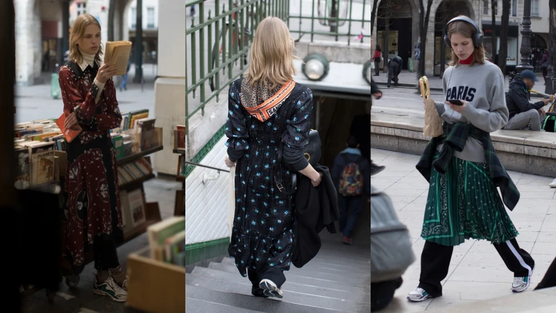 在造型上,品牌也發揮巧思,將裙裝配上褲子與球鞋、領帶和絲巾融入衣領設計,使整體的風格展現出自由與對立的巧妙組合。