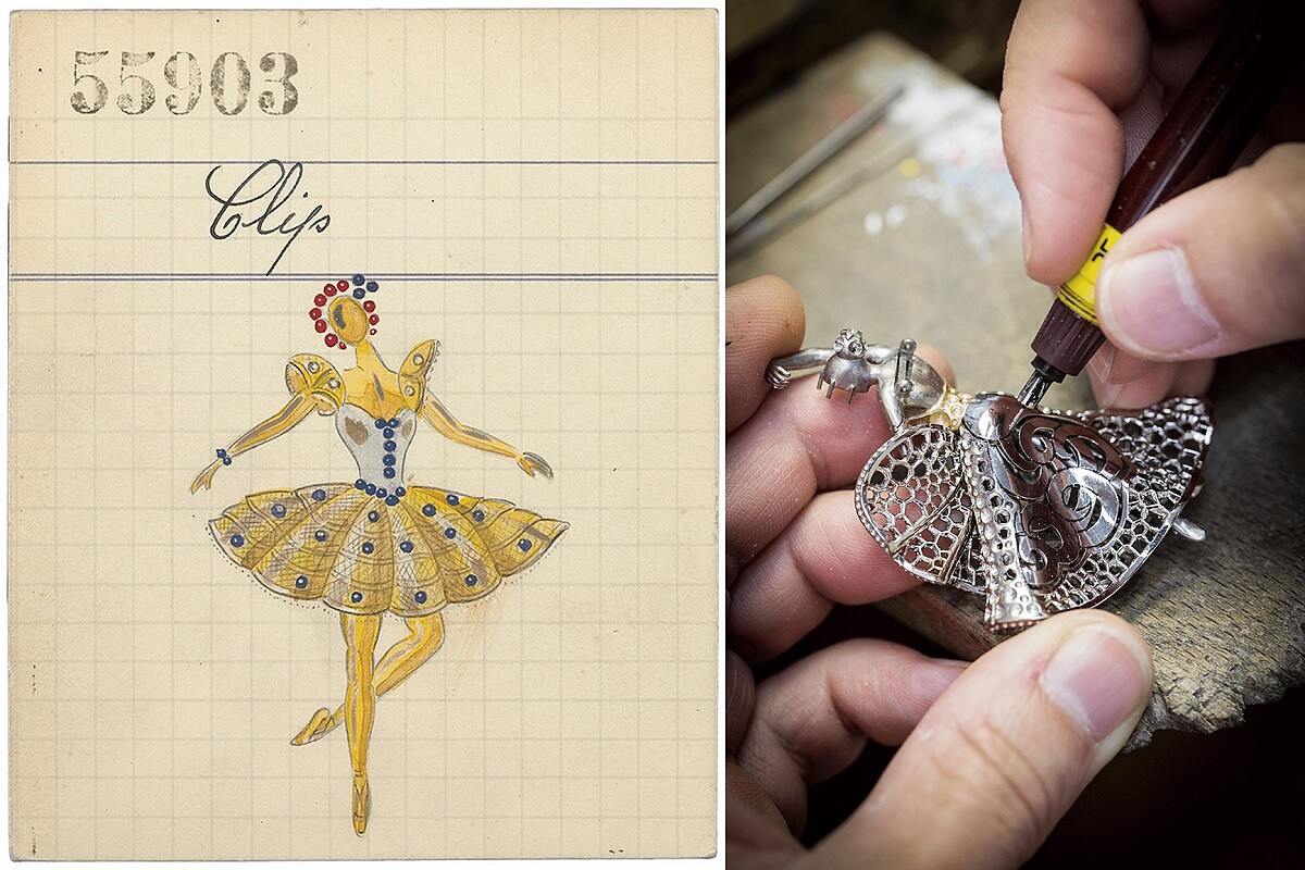 梵克雅寶珍藏的1945年Dancer胸針設計手稿;以及Ballet Précieux高級珠寶系列胸針的製作過程,透過世家黃金之手的工匠大師們,展現傳承百年的頂級精湛工藝。