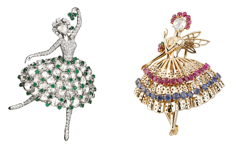 其系列的誕生,源自世家的家族成員路易·雅寶(Louis Arpels)對於舞蹈藝術的熱愛,1941年發表了第一只Spanish Dancer胸針,以玫瑰式切割勾勒出芭蕾舞者臉龐細緻典雅的風格,並以鉑金鑲嵌珍貴寶石展現舞裙旋轉時的輪廓,其維肖維妙的靈動姿態,在在突顯了梵克雅寶傳世的珠寶工藝。