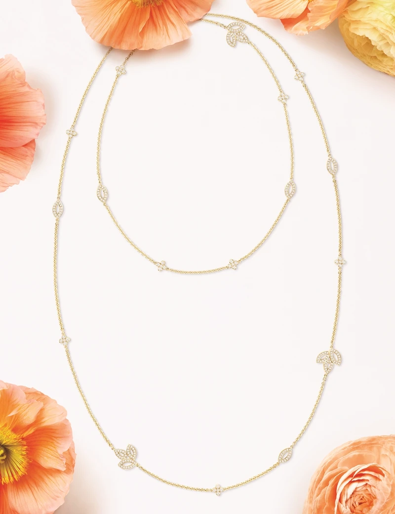以品牌獨家的Cluster鑲嵌搭配花式鑽石切工,Lily Cluster系列臨摹出花朵綻放時的優雅線條與樹葉細膩的弧形曲線,不論是正式場合或日常穿戴皆宜。2018年更推出全新長項鍊,首次以工整精緻的百合花蕾點綴線條流暢的優雅長項鍊,呈現華美耀目的百合花姿。