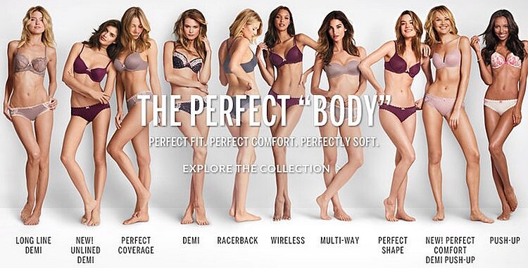 品牌模特兒的身材樣貌一直是大眾很關注的議題,近年來很多人開始提倡「不完美才是完美」大家認為品牌應該多僱用較貼近一般人的模特兒,而非只選擇特定樣貌的人替他們代言,譬如說知名的維多莉亞的秘密就曾受到抨擊,維密曾經拍了一系列廣告並命名為 “The Perfect Body”,這馬上就引來討論,因為他們的維密天使各個都非常相似,也嚴重缺少了種族多元性,在這樣的情況下,維密卻稱他們為最完美的,使得大眾非常不滿,維密也在眾多批評後將廣告換掉。