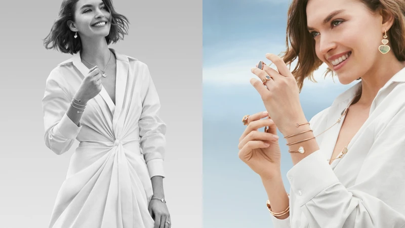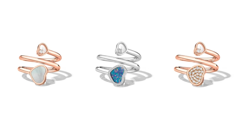 「若要我列舉一件與蕭邦關係最密切的事物,那麼必定是一顆愛心,因為其中傾注了整個家族的心血。」心形在藝術、文化及時尚領域亦備受青睞,當中滿溢的情感和愛意則替日常生活增添了明媚光彩。如今,全新Happy HeartsTwist珠寶系列即凝聚了心形的意涵,以18K玫瑰金或白金製作,並擷取了寬版手鐲的造型輪廓,打造層疊纏繞的華麗手鐲與戒指。