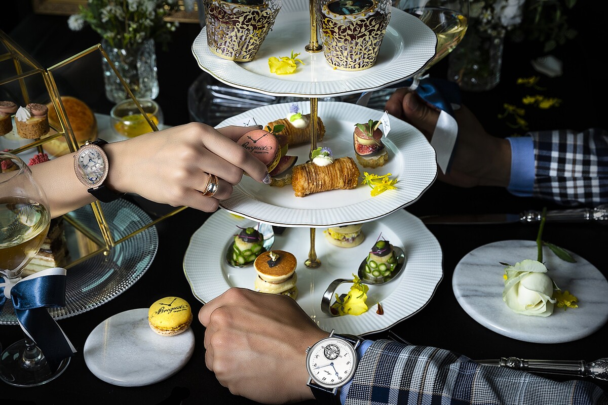以寶璣皇后雙人下午茶饗宴為主題,推出以皇后奢華為名的食材,搭上寶璣最具話題性的那不勒斯系列腕錶的細節來設計餐點,從餐桌上的鹹點開始,鑽石松露干貝蘆筍慕斯、龍蝦布理歐許、魚子醬鬆餅、無花果火腿蜜瓜球,到法式經典檸檬塔、瑪麗皇后絲絨蛋糕、珍饈可麗露、法式經典檸檬塔、歌劇院歐普拉、貴腐鴨肝馬卡龍等10款茶點,搭配法國香檳與百年花草茶,並使用品牌珍藏已久的16-20世紀間歐洲古典餐具,以巴洛克風格金邊來打造法式宮廷氛圍,將所有奢華元素入茶點內,每一口都像是女皇般的感受皇室優雅生活品味,當一天時髦皇后也開心!