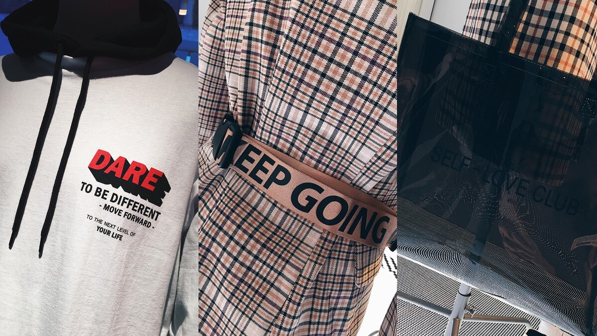 如果細心留意,還會發現Bershka在衣服、腰包背帶、托特袋和毛帽的細節中藏了很多有趣標語,像是self-love club(愛自己俱樂部)、keep going(堅持下去)、never ending fun everyday(每天都不要停止樂趣)…等,就是要讓人穿搭不只是單純的穿衣服,還要能穿出最忠於自己的態度!