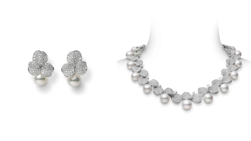 全新的《Les Pétales Place Vendôme》以芳登廣場飄舞的玫瑰為靈感,並採用了17顆頂級南洋珍珠,交錯排列在由鑽石打造的玫瑰花瓣間,透過鑽石和珍珠銀的輝映,打造出貴氣逼人的奢華項鍊。而為了讓配戴者更顯光彩奪目,MIKIMOTO還特別推出同系列的“兩用”南洋珍珠鑽石耳環,你可以隨穿著與場還選擇將珍珠保留或卸下,展現遊走於古典奢華和摩登都會之間的萬種風情!
