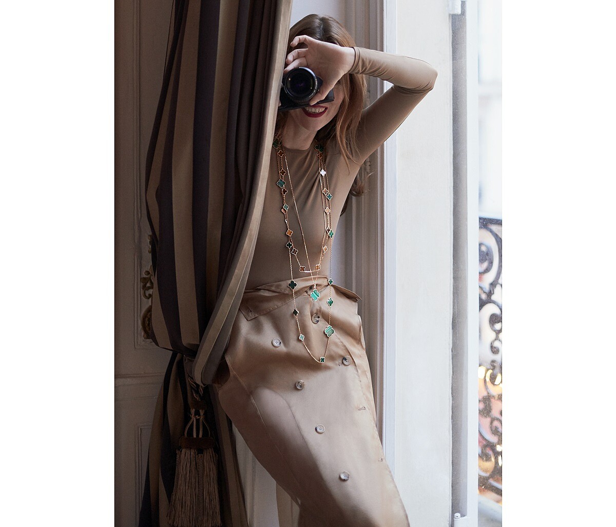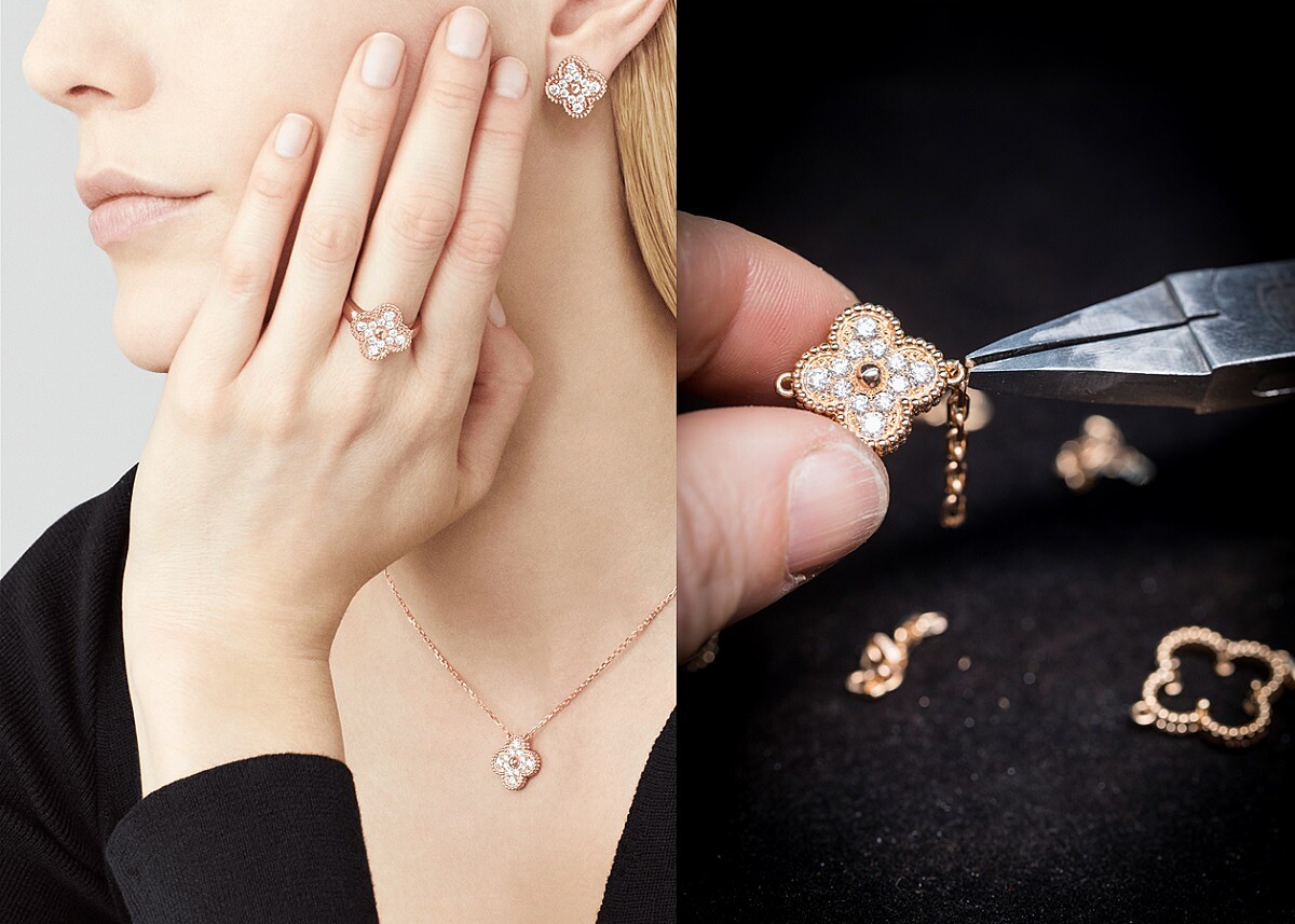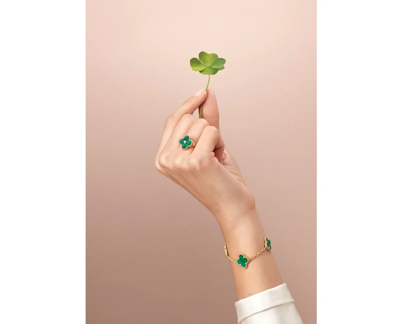一向將幸運元素視為珠寶創作重要靈感泉源並珍視其價值的梵克雅寶家族,早在1920年代就首度將四葉幸運圖騰運用在設計之中;1968年更以四葉草為主題,推出Alhambra系列長項鍊,20枚立體紋路金質的四葉幸運圖騰,有著金色小圓珠飾邊,簡約細膩的線條輪廓以及和諧美好的象徵,一推出就備受好評,不但為女性日常佩戴珠寶的方式注入隨性優雅的全新風貌。