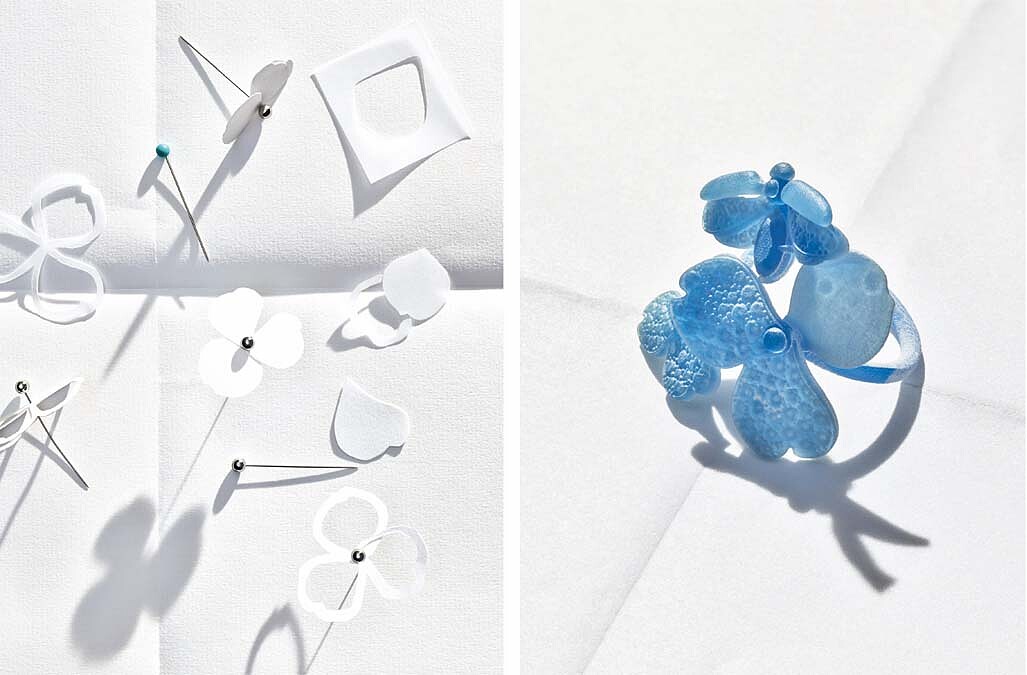 要說讓人感到驚艷的,絕對是將天然花卉圖案透過剪紙藝術精巧拼貼固定,充滿盛開姿態卻又簡單具有詩意,搭配現代工業風情的概念融入其中,完美達到華美、精緻、自由、隨興又浪漫的耀眼風姿,光是能夠將:剪紙藝術、拼貼、現代工業風、浪漫天然花卉等元素巧妙且無違和灌輸到Paper Flowers珠寶系列中,就可見精湛工藝與設計美感的非凡功力。