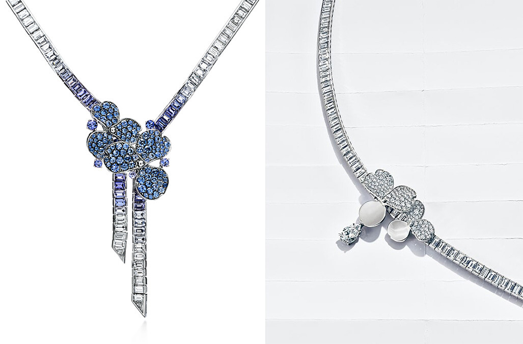 Tiffany Paper Flowers 高級珠寶系列 鉑金鑲嵌丹泉石、藍寶石與鑽石項鍊、鉑金鑲嵌鑽石項鍊