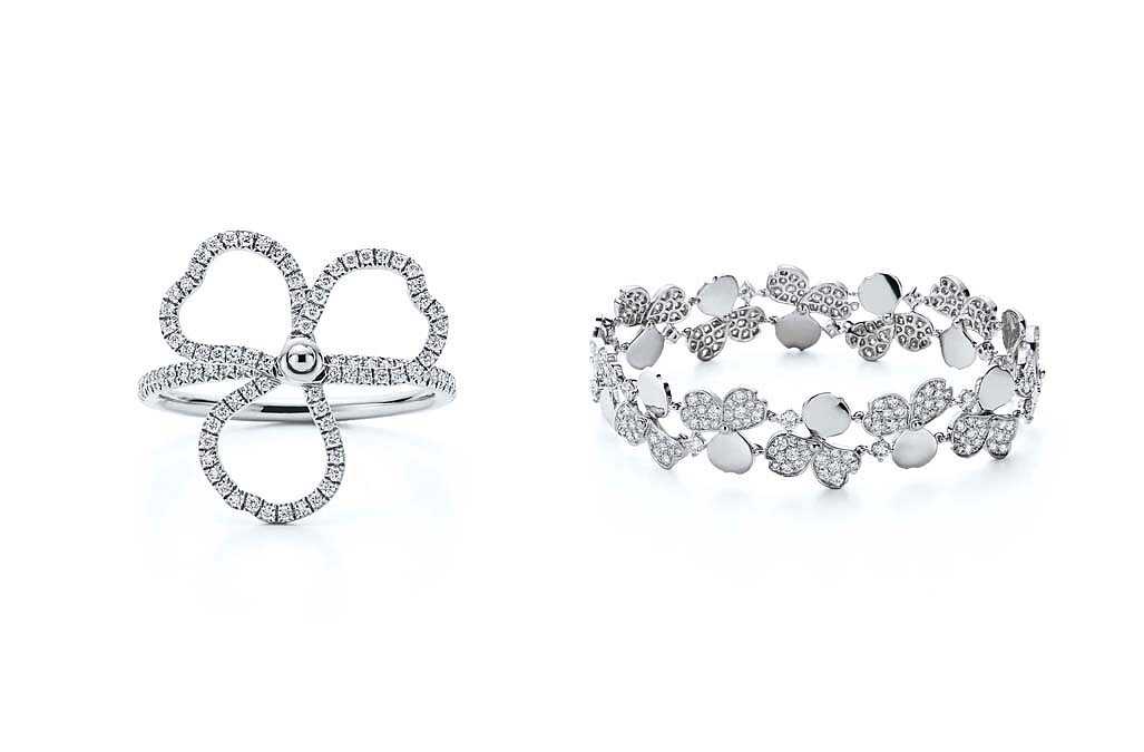 Tiffany Paper Flowers 系列 鏤空花瓣設計鉑金鑲鑽戒指、花瓣設計鉑金鑲鑽手鍊