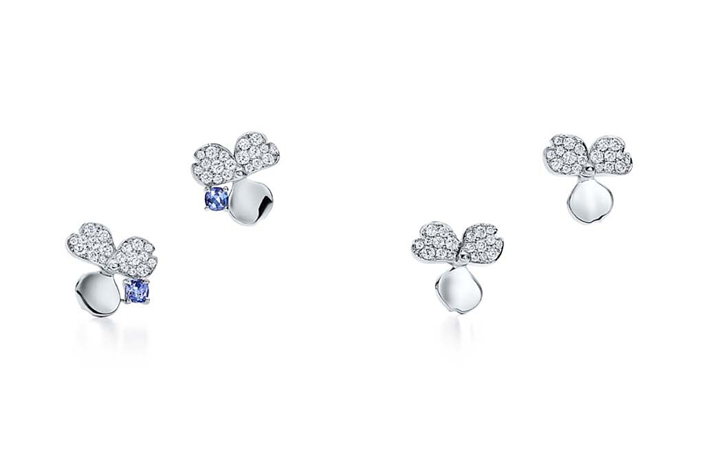 Tiffany Paper Flowers 系列 花瓣設計鉑金鑲嵌鑽石與丹泉石耳環、花瓣設計鉑金鑲鑽耳環