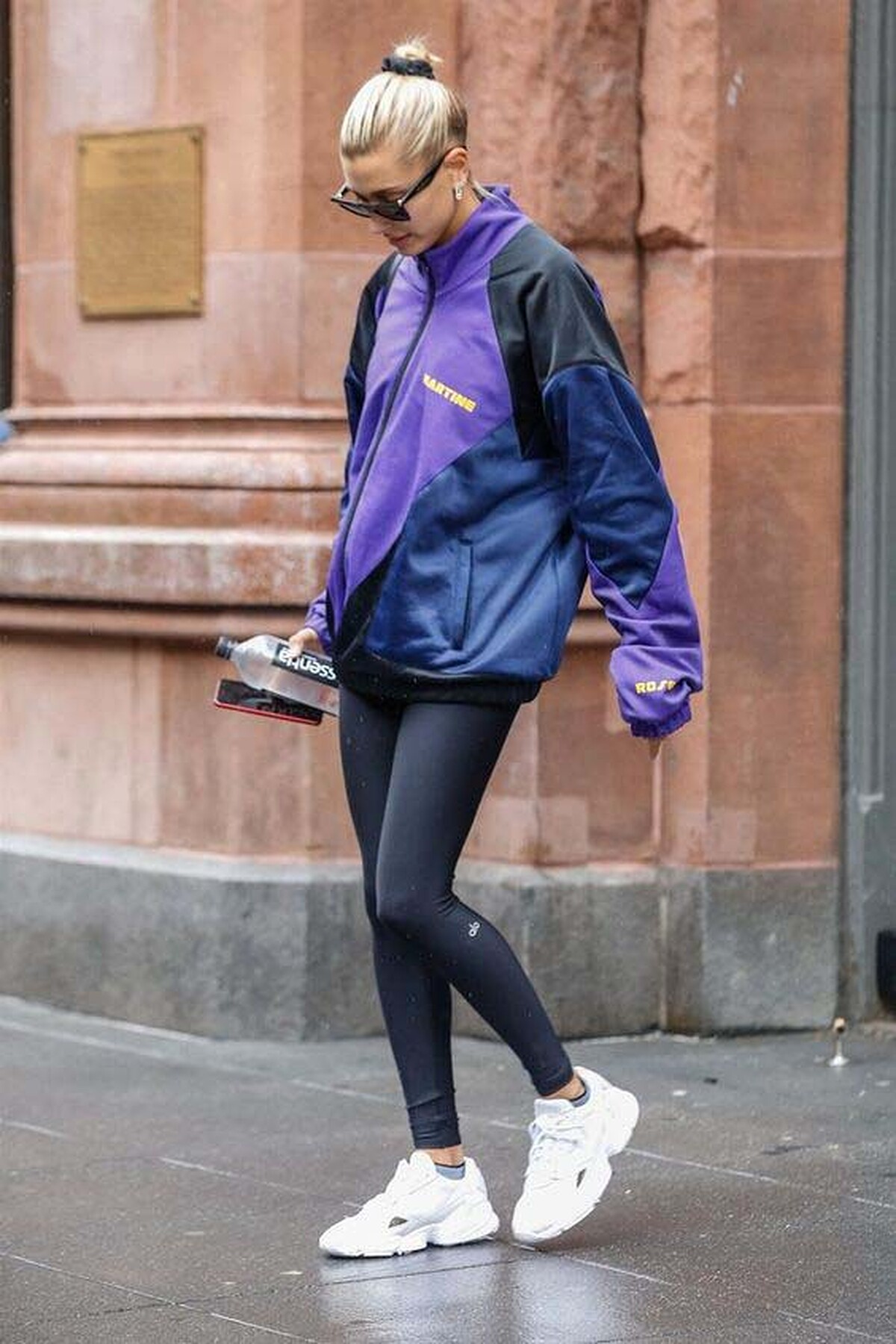 白鞋控女孩舉手!全新的Falcon復古球鞋當然少不了超好搭的簡約白色,身為Justin Bieber小賈未婚妻,走路自帶女神氣場的Hailey Baldwin,套上撞色鮮豔的Oversize運動外套,上寬下窄的搭配小巧思,腳踩純白色Falcon馬上營造出名模般長腿和強烈的潮流時尚感~