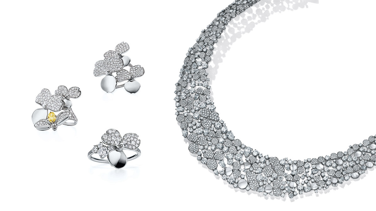 此系列款式涵蓋項鍊、鍊墜、耳環、手鍊及戒指。而系列中一款以逾68克拉梨形與圓形明亮式鑽石交錯打造而成的繞脖鑽鍊,完美演繹出Tiffany對高級珠寶一向堅持的優異品質與精緻設計傳承,花瓣之間採不對稱設計流暢相連,展現出造型結構的新穎巧妙與對細節的一絲不苟。