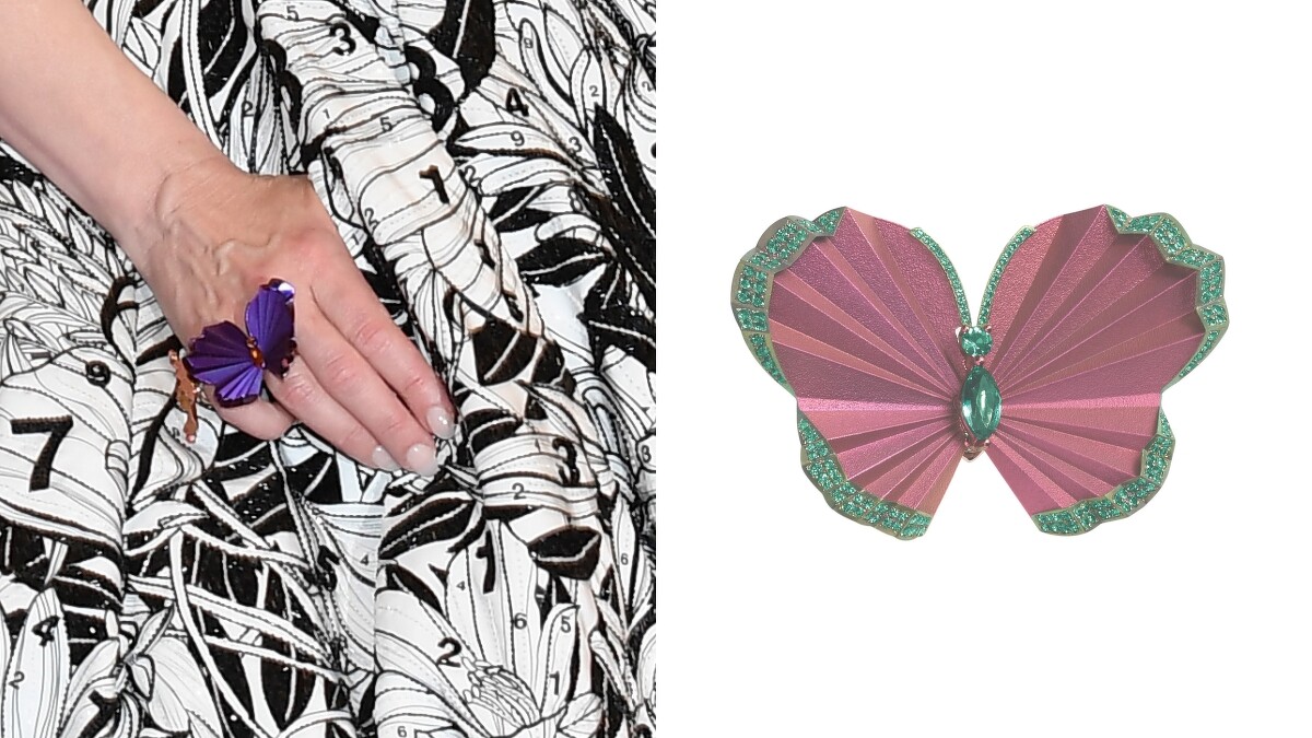 蕭邦動物世界系列自2010年發表以來深受各國珠寶收藏家的喜愛,除了彰顯出創意總監Caroline Scheufele童心未泯的豐富想像力,栩栩如生的動物或昆蟲肖像則賦予珠寶從未見過的生命力。而此次展出的作品中以極富寫實加上摺紙意象的蝴蝶為主要焦點,堅硬卻輕盈的鈦金屬翅膀再透過電解程序的處理後,呈現出飽和的鮮豔色彩。此外,蝴蝶翅膀周圍和身體分別鑲嵌上了彩寶與鑽石,讓設計作品更顯閃耀動人!