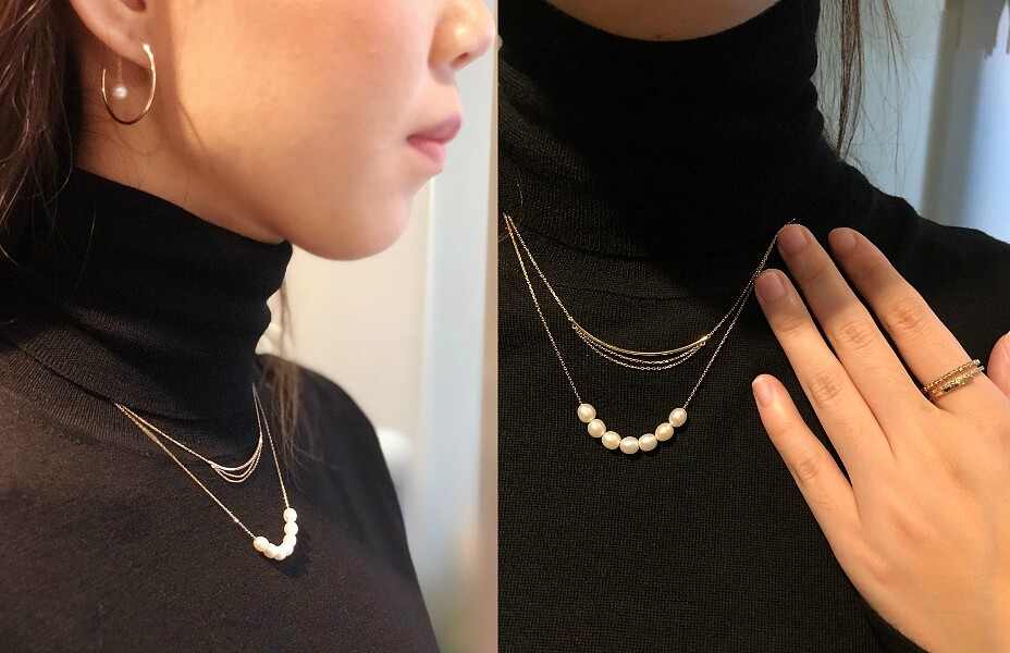 珍珠是女生絕對可以有的好東西,COCOSHNIK融入珍珠設計的飾品,都有種個性秀氣兼具的獨特美感,像這樣將珍珠耳環與項鍊組在一起配戴,不但可以提升暗沉秋冬造型的明亮度,也能替自己添加雅緻氣質,而且項鍊部分還能層疊配戴其他纖細款式,運用層次線條來強化整體不繁複卻耀眼吸睛的造型豐富感。