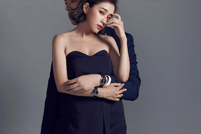 每個重要的紀念日,唐葳會更更多花心思在造型上,穿上典雅黑色洋裝,與他一起戴上Longines浪琴表Record開創者系列腕錶,簡單卻又迷人從容的優雅情人氛圍就此展開。