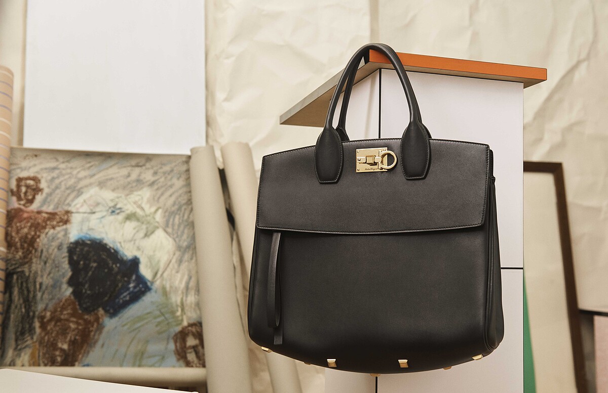 答案就是Salvatore Ferragamo的Studio Bag包款,從品牌創始人Salvatore Ferragamo的工作室具有非比尋常的重要性作為延伸,創意總監Paul Andrew攜手長居紐約的歐洲藝術家Ana Kras所精心打造,專屬都會女性的品味包款系列。