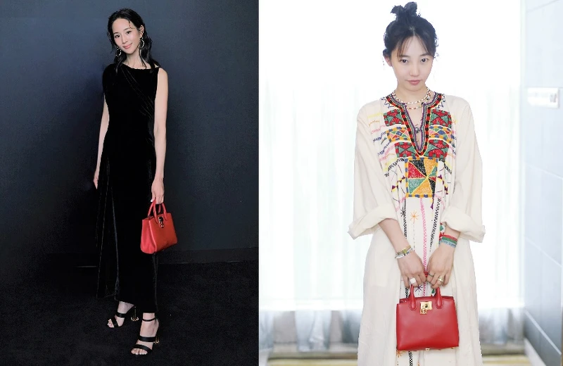 張鈞甯搭配STUDIO系列紅色牛皮提包出席活動;白百何手提STUDIO系列紅色牛皮提包,建議售價NT$53,900 (小)