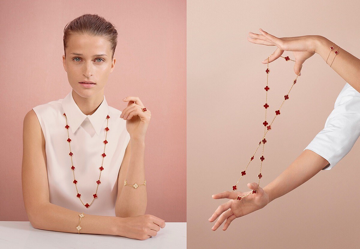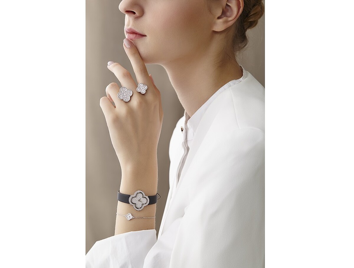這個象徵幸運的符碼,歷年來經過梵克雅寶多次重新詮釋,因運用不同的貴金屬材質與彩色寶石、鑽石組合,讓這系列珠寶有了截然不同的風格與樣貌,黃K金、玫瑰金古典優雅的氣質與白K金現代摩登的雅致感,跳脫傳統珠寶既定的框架限制,對於經常需要出入各種不同重要場合的職場菁英女性們來說,比一般飾品更具精緻質感又能襯托身份的設計,是她們搭配造型時的最愛。