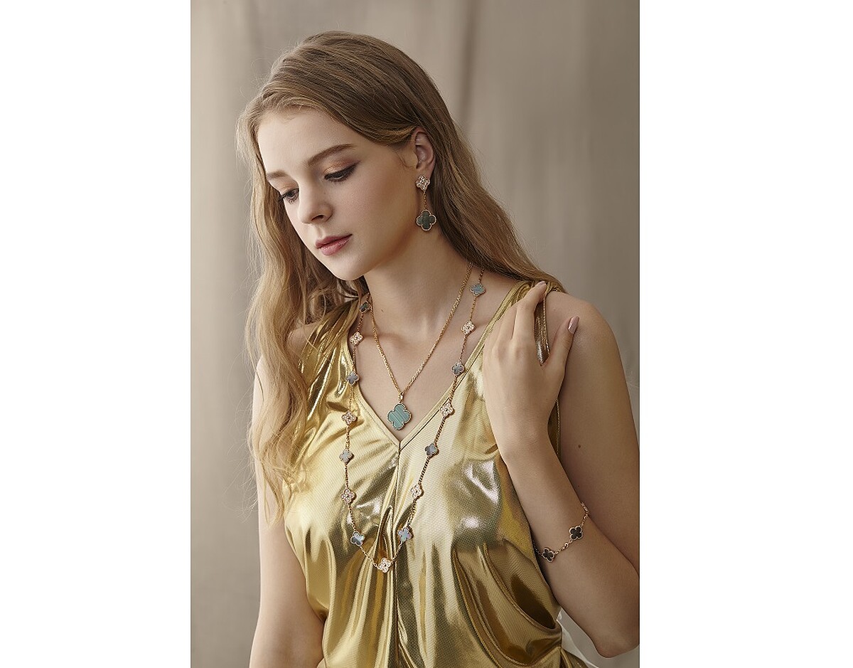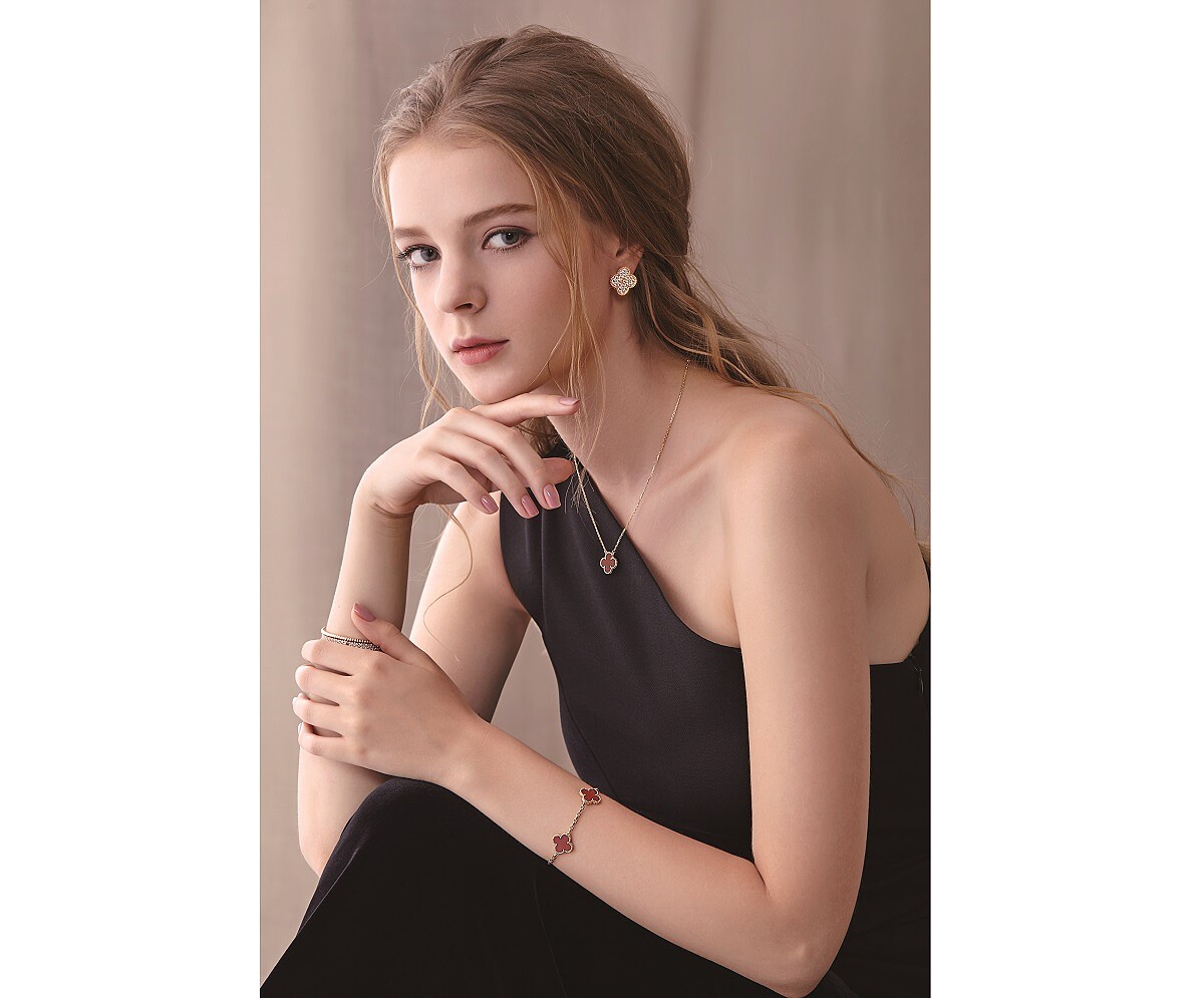 Alhambra系列之所以跨越年代還能深受巨星名人喜愛,就是憑藉它擁有駕馭各種造型的夢幻實力,只要是時髦女子都必會收藏的經典珠寶首選,儼然成為女生們人生幸福品味的必備珍寶。