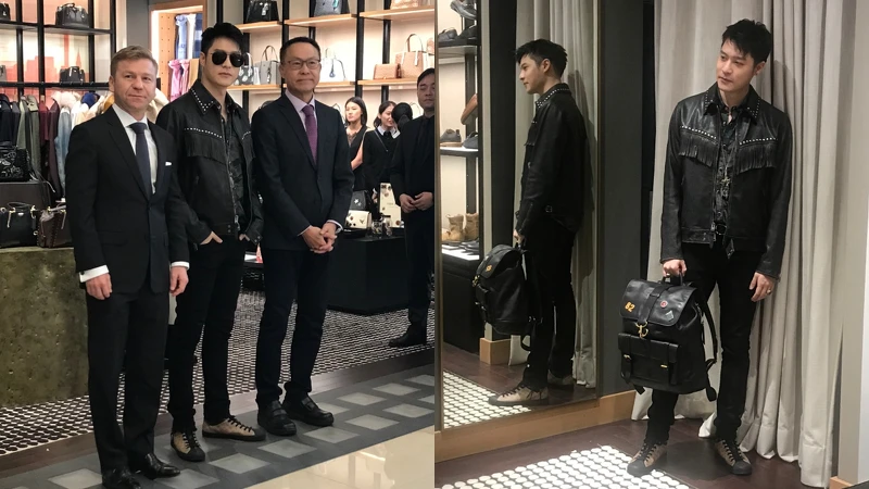 許久未在台灣露面的周湯豪,今日以一身既復古又搖滾的造型現身台中大遠百的Coach全新概念店。造型打扮上偏愛街頭風的他,將飾有流蘇及鉚釘的皮革夾克搭配上綠色印花襯衫,展現充滿華麗的街頭風範!腳踩的Logo元素高筒球鞋則完整了整體的叛逆不羈格調。