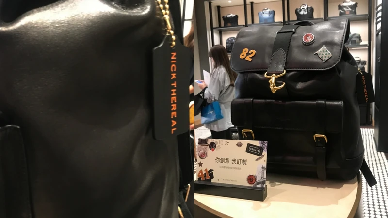 替大家搶先體驗Coach Create-Customized it專屬訂製服務的周湯豪,選擇了Coach Bleecker系列皮革後背包,並放置上8、9的數字勳章,看到這,身為粉絲的你一定知道這代表著什麼~沒錯!這兩個數字就是周湯豪本人的生日日期!另外像是黑白方格旗象徵音樂路上的里程碑、啤酒瓶蓋則有著幸運的含義…其餘的還有拉環、月亮、迴紋針…大家不妨親自到店上挑選自己期許或符合自己的勳章喔!(勳章售價皆NT750,另外只要有購買包款就可獲得訂製款的Tag喔)