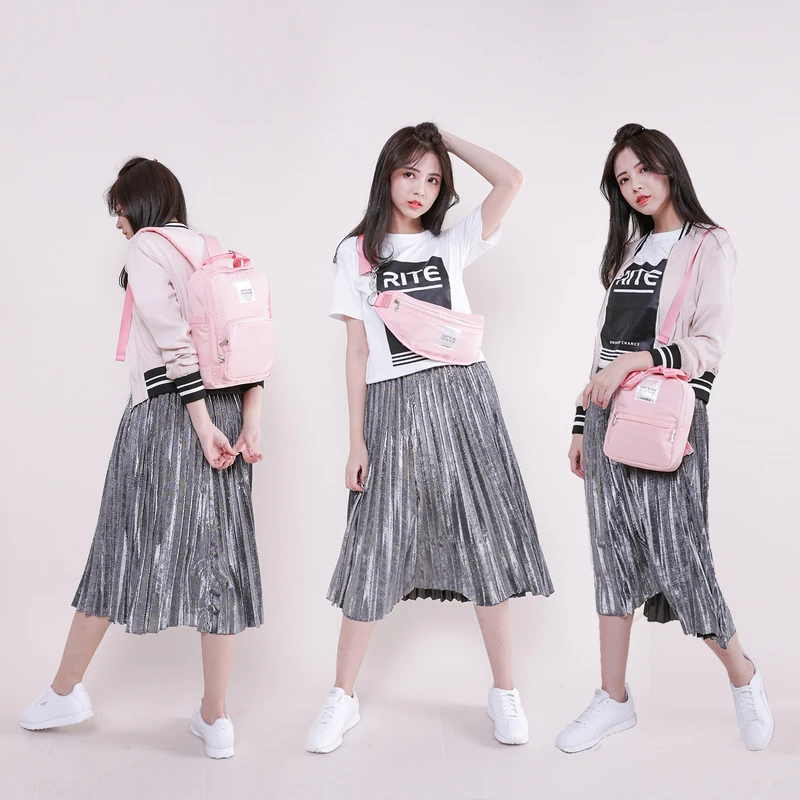 別以為粉紅色,只能走可愛路線,《粉紅 x 黑》 的配色設計,為粉紅添上點 龐克Stlye。專為運動系女生設計,超輕量包款,三種款示皆選用超輕防潑水材質,大後背包、迷你後背包、腰包。