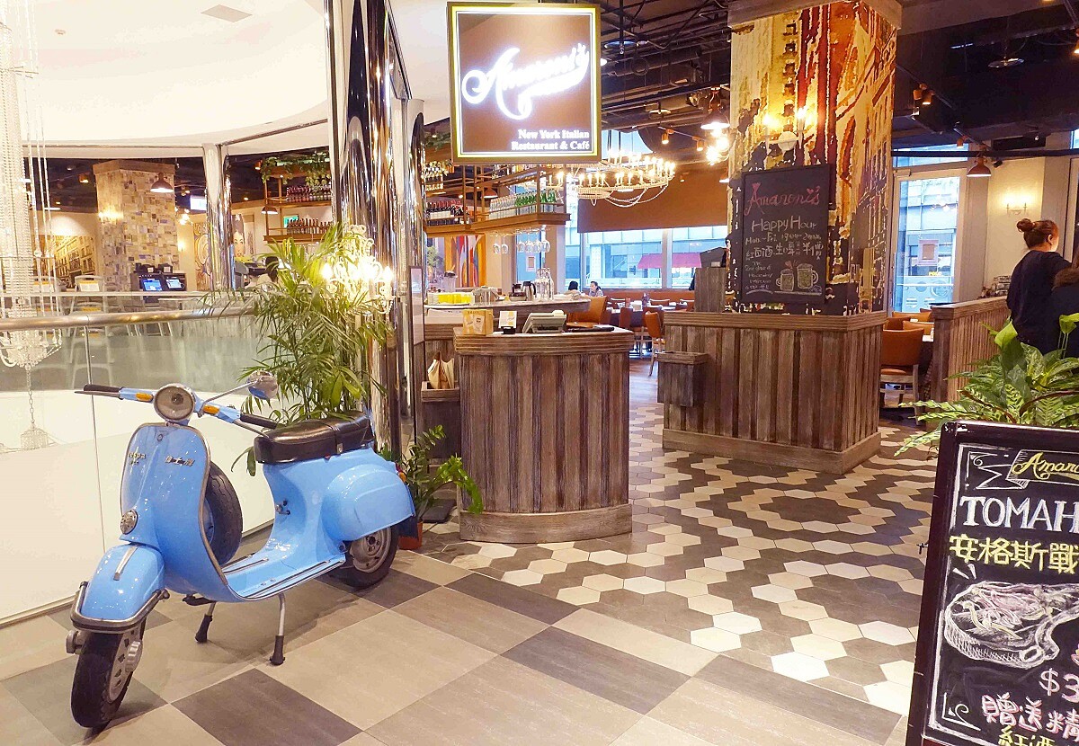 來自紐約的創意料理Amaroni's New York Italian Restaurant & Cafe,融合創意的義大利料理又兼具超滿足的美式份量,非常適合全家大小、朋友聚餐。店內有許多極具特色的陳設。