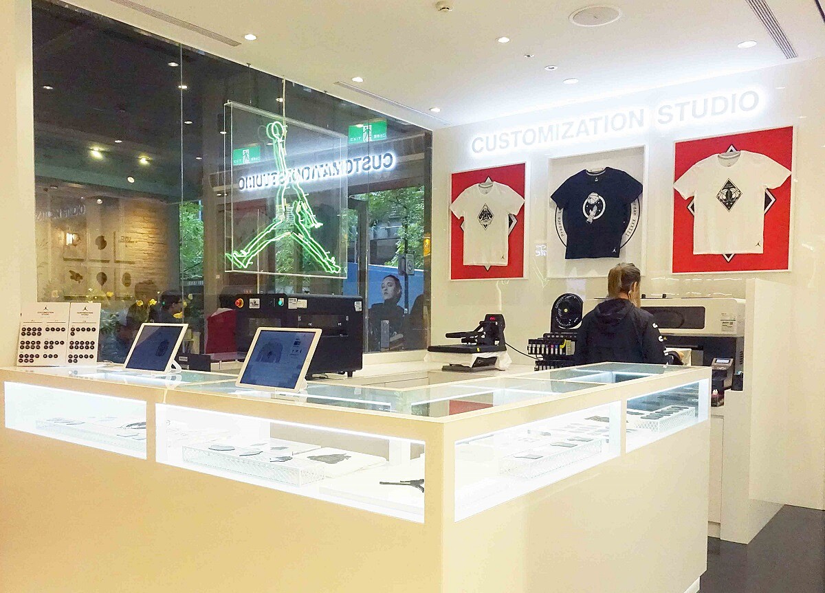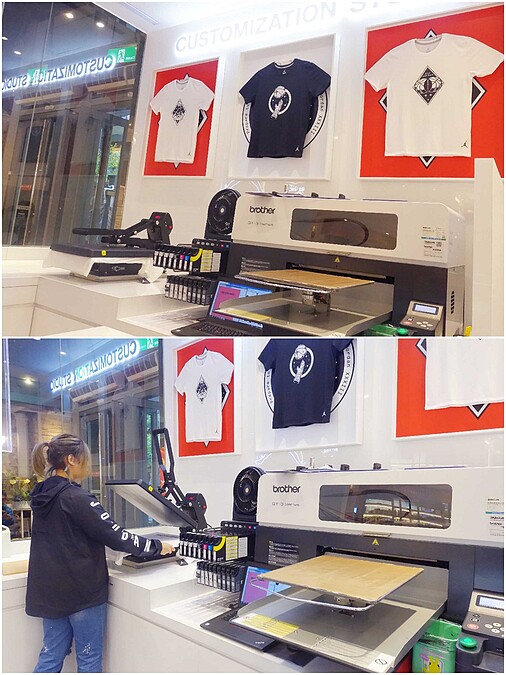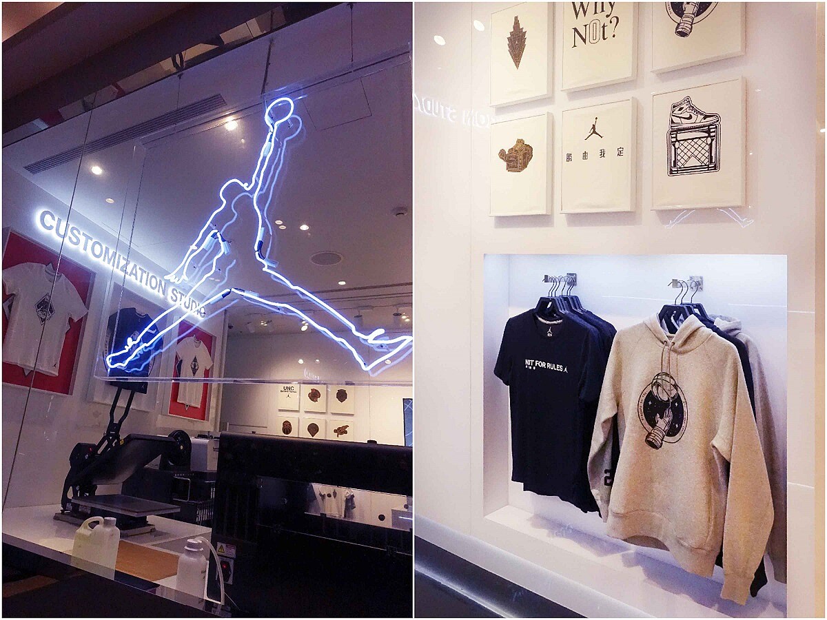 Jordan迷絕對要一訪的微風松高的Jordan專櫃,此間為客製化的Jordan Hoddie第一個製作店家,目前有灰色和黑色兩個Hoodie可以選購,還有6種燙印圖案可以挑選,製作獨一無二、專屬自己的Jordan Hoddie。