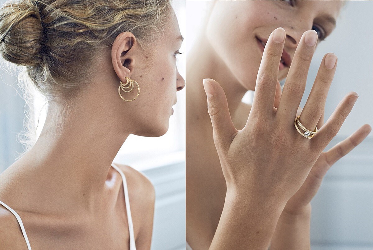 設計靈感來自夜空與斯堪地那維亞的美麗光線,整體設計運用層疊大小圓圈、環狀線條,並鑲嵌美鑽於耳環、戒指、手鐲上,如繁星散發光芒,完美詮釋出不張揚浮誇也依舊充滿存在感的上乘珠寶風範。