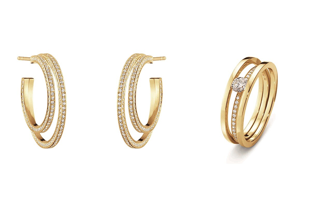 與出身哥本哈根當代珠寶設計新銳—蘇菲.比爾.布拉赫 (Sophie Bille Brahe)合作的「光環」(HALO)系列,以18K黃金與鑽石,外型設計融入雕塑般的圓環、平面幾何與俐落線條,呈現出中性帥氣、柔和雅緻、俐落摩登的多重樣貌。