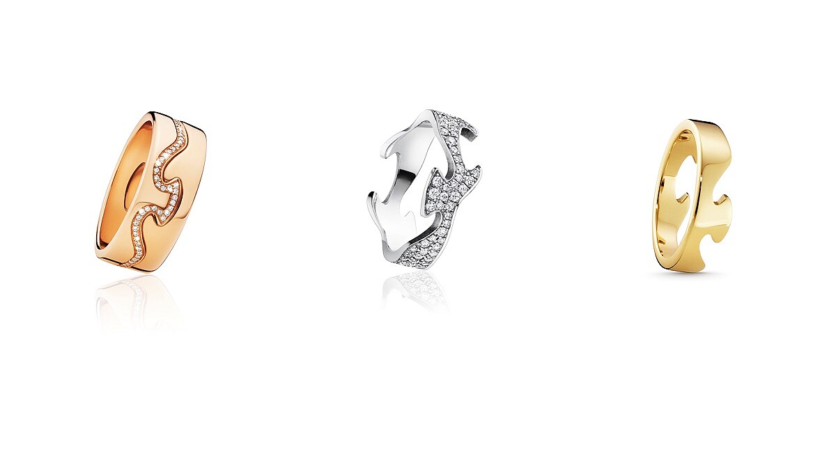 延續品牌有機型體設計,但自主性與趣味性更高的FUSION珠寶,由設計師Nina Koppel把大自然元素完美融入,流線線條如同波浪層疊推進,加上三種貴金屬材質、四式鋪砌設計、多彩寶石材質,可以自己選擇單環、兩環、三環或與其他系列戒指搭配,可以延伸出4000多種的組合佩戴,強調獨一無二與個性化,新穎的創意彰顯出喬治傑生的珠寶設計美學。
