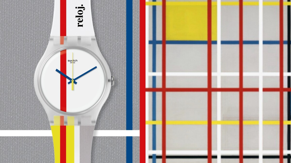 以色彩學中的三個主要原色,紅、黃、藍,搭配上簡單明瞭的黑灰白色塊和直線線條,荷蘭畫家蒙德里安僅透過這些基本創作元素,組合出震撼人心的抽象美學。如今,Swatch將畫作上的俐落摩登線條轉化在腕錶上,使充滿輕快明亮的渲染力揮灑至腕間。造型上與休閒單品如丹寕+T-shirt都很合適喔~