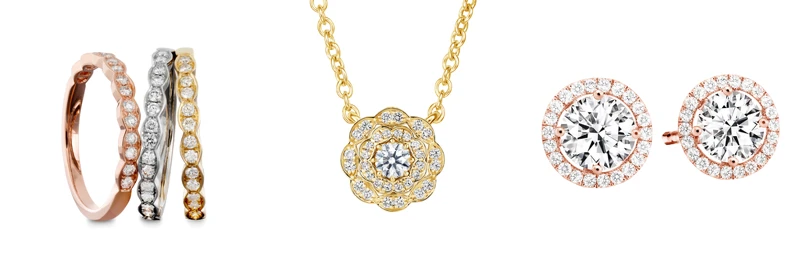 Lorelei鑽石線戒單只、Lorelei Floral 黃K金鑽石項鍊、Repertoire玫瑰金復古奢華美鑽耳環