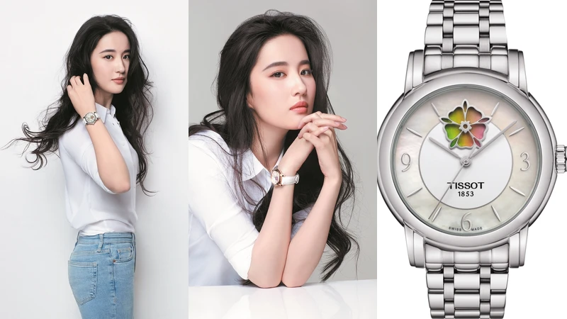天梭表於聖誕節前夕推出開心系列新款,將其鏤空曼陀羅花輕輕抹上了彩虹色彩,色盤隨著一天二十四小時週期變換。天梭表全球代言人劉亦菲也為此系列著迷,早在今年六月就拍攝了仙到不行的形象照,白上衣\配牛仔褲再搭上手錶,簡簡單單就很時髦!