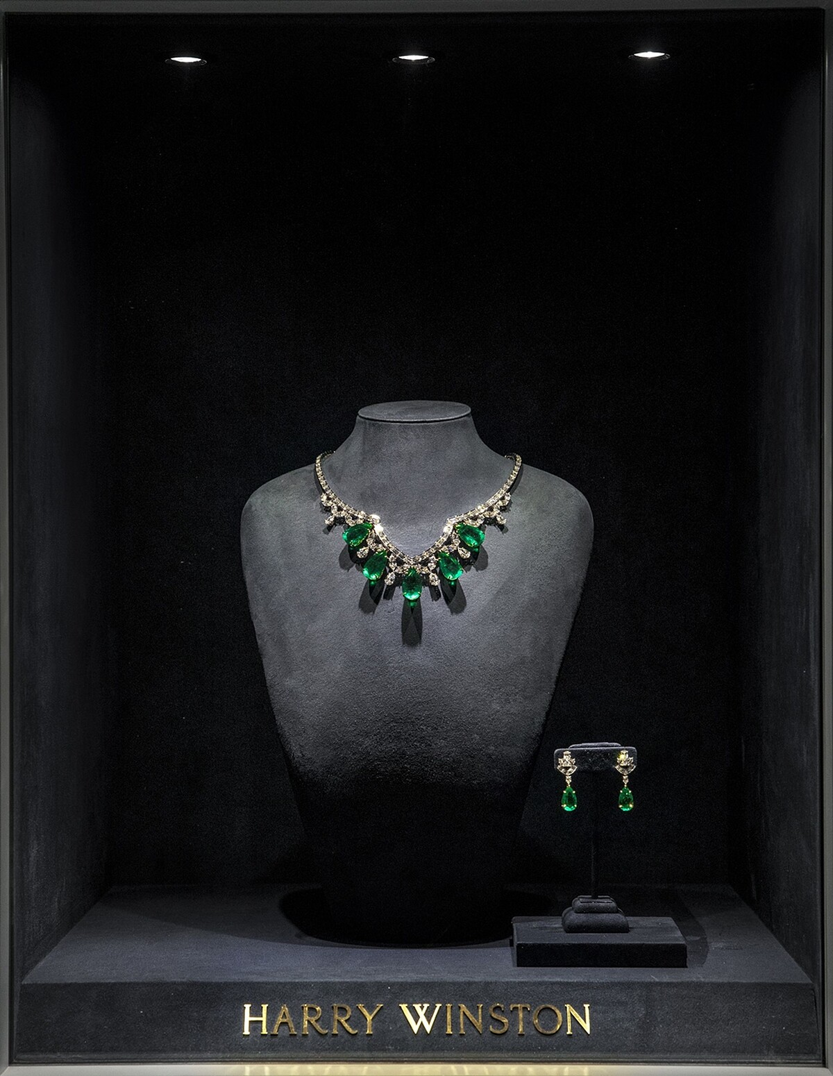 Harry Winston最初位於紐約東51街7號,位於紐約聖派翠克大教堂St. Patrick’s Cathedral正對面。Cathedral項鍊和耳環重現聖派翠克大教堂的比例、裝飾風格與建築構造,突顯出水滴型切工祖母綠的美感。