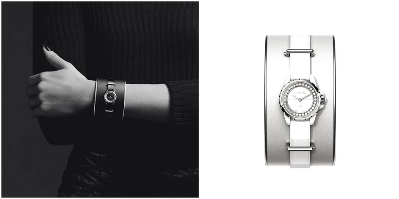 說起Chanel腕錶,大家第一個想到的,絕對是大名鼎鼎的J12系列。在2000年首度推出以來,便以陽剛的運動風格創造出話題。「誰說女人不能戴帥氣的運動錶?」這樣的概念,不僅是當時腕錶市場少有的思考方式,也非常符合 Chanel女士在創立品牌初期,運用男裝女穿手法奠定地位的風格精神。此外,白色陶瓷款的J12腕錶,更在當時引發了一股白色腕錶風潮。而這次在限定店內展示的,則是J12.XS延伸款式,除了19mm的精緻錶盤外,結合了皮質手鐲或是手套呈現的作品,讓腕錶也可以是時髦飾品!