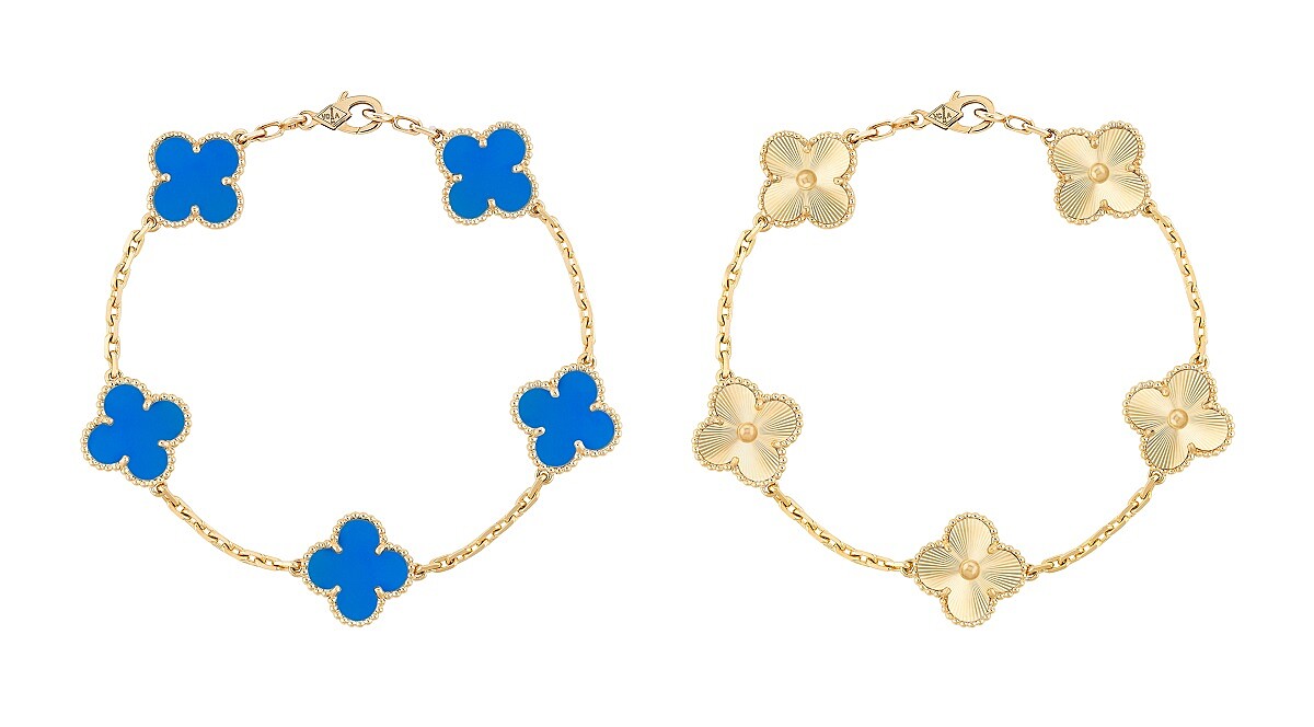 Vintage Alhambra藍瑪瑙手鍊、Vintage Alhambra璣鏤雕花黃K金手鍊。