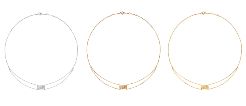 COCO CRUSH 18K白金鑲嵌29顆明亮式切割鑽石項鍊、18K Beige米色金鑲嵌29顆明亮式切割鑽石項鍊、18K黃金鑲嵌29顆明亮式切割鑽石項鍊。