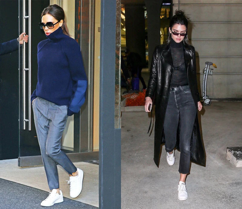 看貝嫂(左圖)用針織衫和西裝褲穿出俐落風,腳上Stan Smith讓整體LOOK瞬間帶入時髦感。超模Kendall Jenner(右圖)則是利用皮革元素來凸顯自我個性,穿上酷炫黑色皮外套,腳踩純白Stan Smith,兩者完美結合讓你藏不住獨特的個人品味。