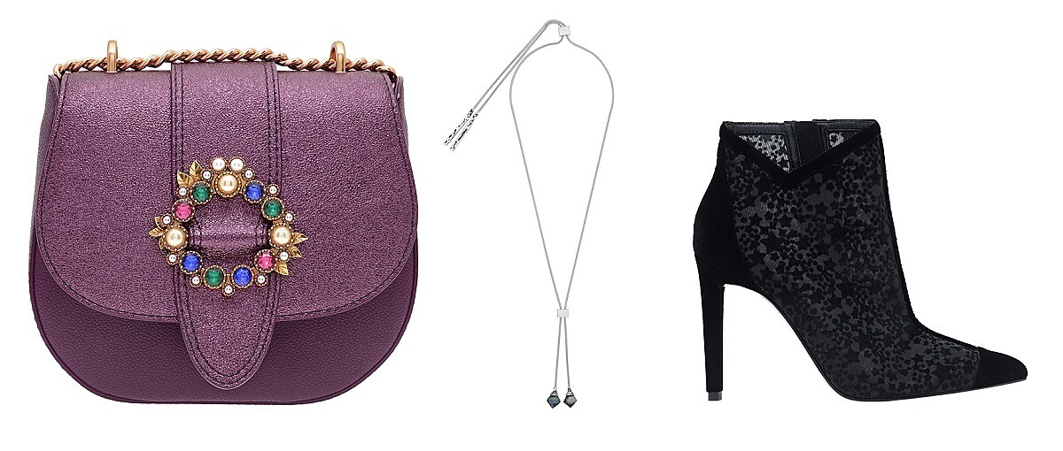展現出優雅又符合季節特性的色系。至於穿搭上仍然強調「挑一個重點」作為主要特色,比如穿著以紫色系為主,就可搭配彩妝以唇彩作為亮點,或是挑亮紅色、粉色、桃色等鞋子包款,突顯整體造型風格。在配件部分,包款上帶有寶石裝飾,配上閃耀金屬光澤的面料設計,小巧耀眼、好質感的金屬配飾,和可修長身形的細高跟鞋,則有畫龍點睛的效果。華麗的包包同時也兼具實用性,從上班到晚上跑趴,一路美到底。