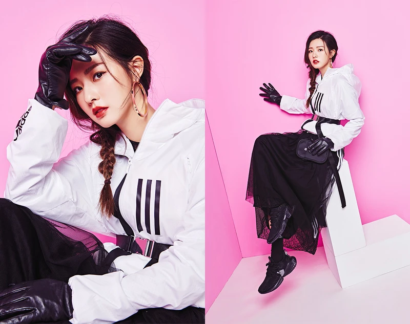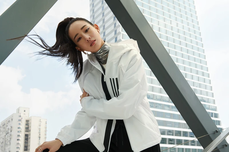 擁有品味都會女子自信態度的張鈞甯,將點綴著adidas經典三線設計的白色款W.N.D.風衣夾克,以俐落簡約、充滿氣勢感的穿搭方式,強調出存在感十足的強烈女子自主精神,酷中帶帥,又洋溢著滿滿的新世代女性魅力。