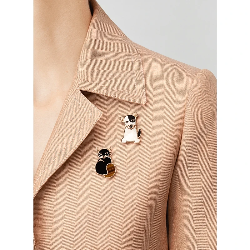 童心十足的 Van Cleef & Arpels 推出 The Lucky Animalstm胸針系列新作,此動物主題以 1950 年代 La Boutique系列為靈感範本,新一代的小狗、小貓、兔子、松鼠…9款動物,不似過往的寫實風格,改以圓型金珠來勾勒圓滾滾的身型,可愛出新高度。